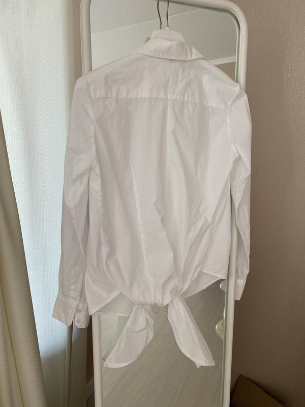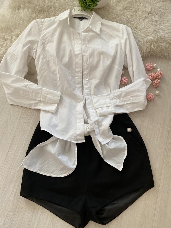Рубашка белая трендовая . Безумно крутая и красивая !!! Выглядит как фрак , очень круто под шорты укорочённые или лосины . Под джинсы вообще огонь. На пуговичках все логотипы .