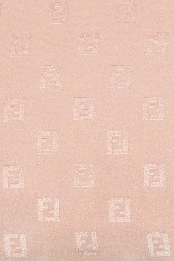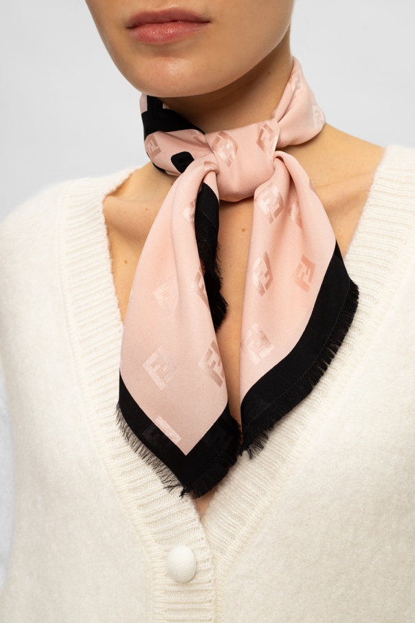 Pink and black scarf from Fendi. Made of silk, this design features an embroidered and printed logo as well as raw cut edges.