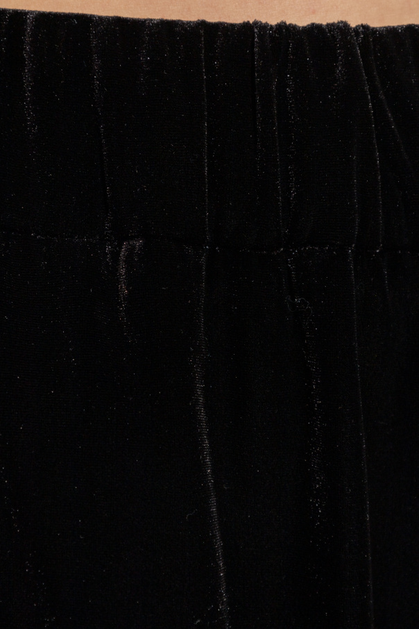 Black trousers from Dolce & Gabbana. Made from velour fabric, this pair falls with wide legs and features an elasticated waistband and two slip pockets on the front.