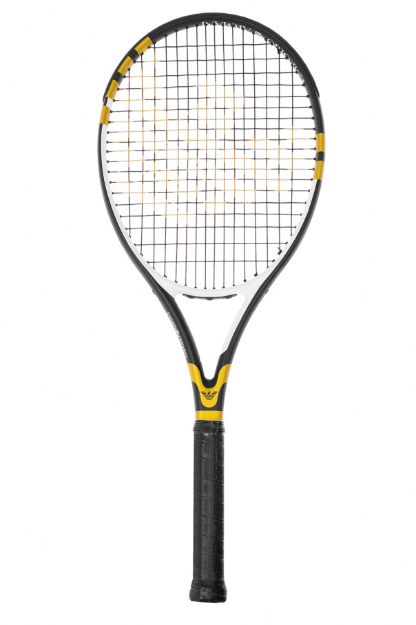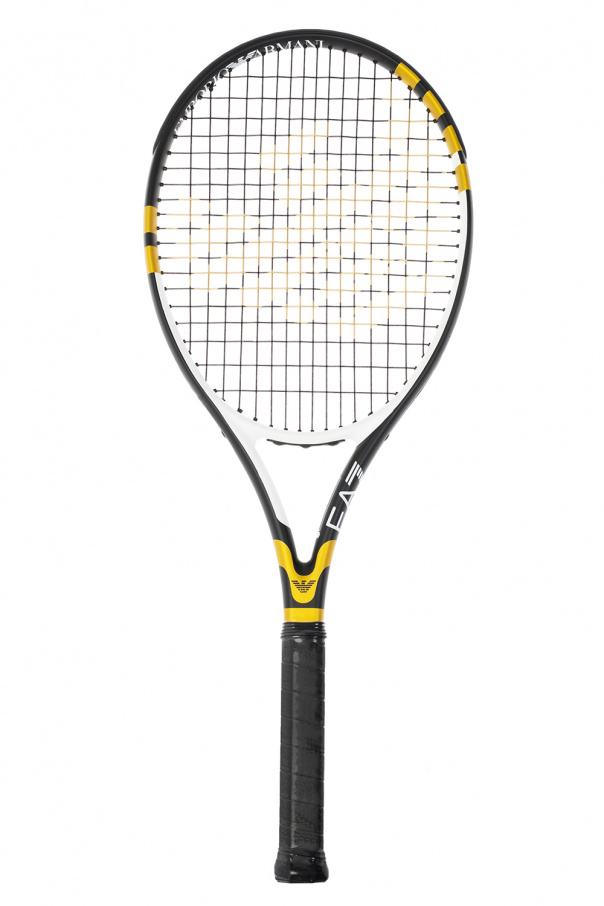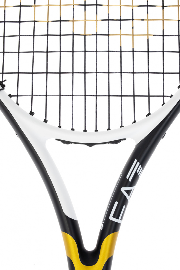 Black, white and gold-tone tennis racket from EA7 Emporio Armani. This item features a logo print and black grip. Comes with a black zipped cover with a white logo print.