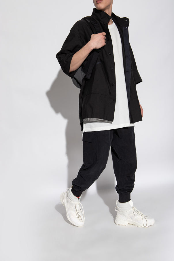 Cream ‘TERREX SWIFT R3 GTX HI’ high-top sneakers from Y-3 Yohji Yamamoto. Crafted from fabric and synthetic material, this lace-up model sits on a cream rubber sole and showcases embossed markings of the brand's lines and the technologies used.