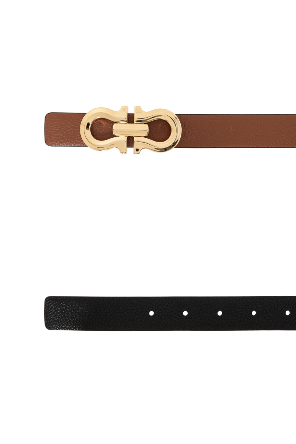 Introducing the epitome of sophistication and versatility: the FERRAGAMO Double-Sided Belt. Crafted from premium calfskin leather with a subtly textured grain, this accessory exudes luxury with every detail. Its slender silhouette makes it a perfect companion for both everyday elegance and special occasions. The belt boasts a unique double-sided design, featuring a classic brown side and a sleek black reverse, allowing for effortless style adaptation. The centerpiece is its gold-toned metal buckle, shaped in the designer's iconic logo, which not only serves as a striking decorative element but also secures the belt with ease. The lustrous finish of the buckle enhances the belt's aesthetic appeal, making it a standout accessory. Designed with functionality in mind, it includes multiple holes for adjustable sizing, ensuring a perfect fit for varying waist sizes. Why Purchase This Belt? Dual-Sided Versatility: Brown and black options in one belt. Luxury Material: Crafted from high-quality calfskin leather. Iconic Buckle Design: Gold-toned logo buckle adds a touch of luxury. Adjustable Fit: Multiple holes for easy size adjustment.