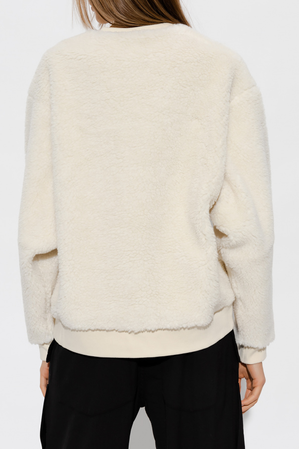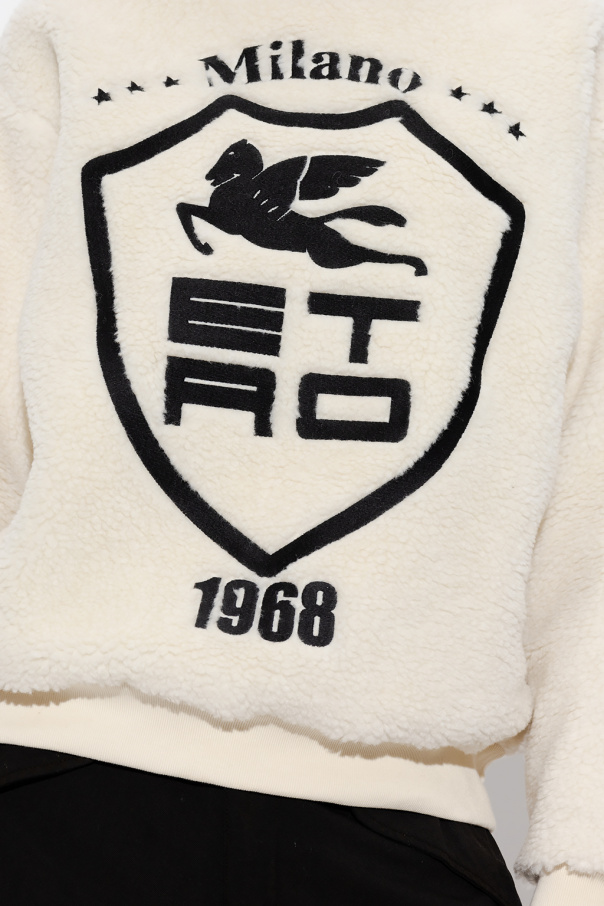 Cream crewneck sweatshirt from Etro. Made of a wool blend, this garment features a black logo embroidery and ribbed trims at the crew neck, hem and cuffs.