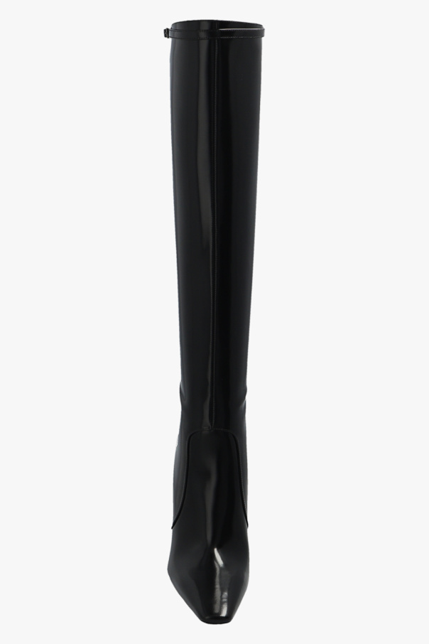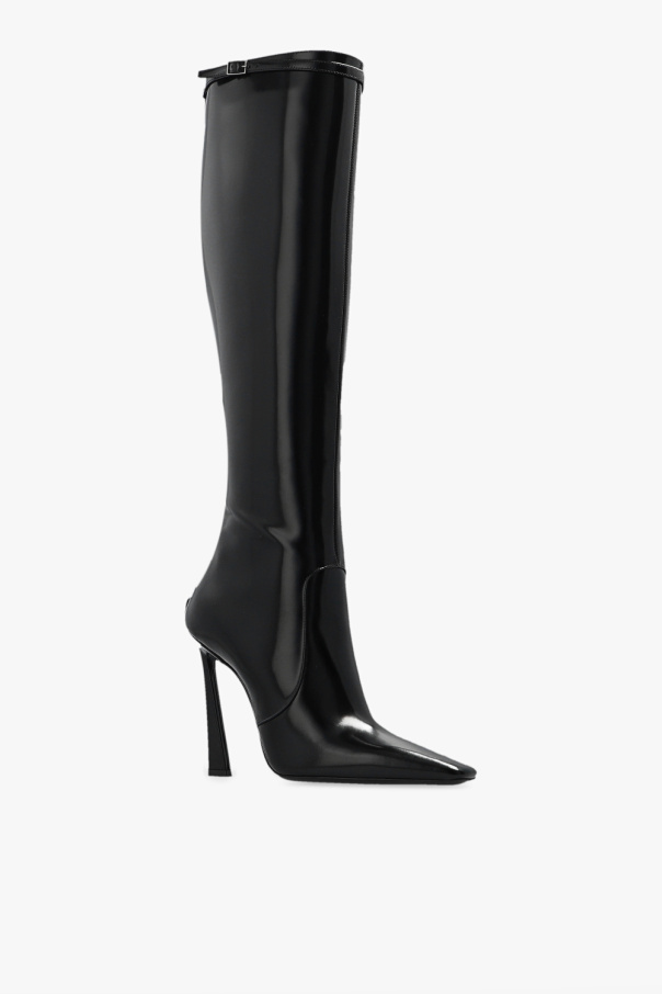 Black ‘Tess’ heeled boots from Saint Laurent. Made of leather, this model features a distinctive square toe, a back zipper and a black leather sole.