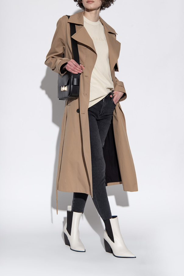 Cream ‘Ria’ heeled ankle boots from AllSaints. Crafted from leather with a slip-on silhouette, this model sits on a grey and black rubber sole and features a pointed toe, back pull tab and black elastic panels on the sides.