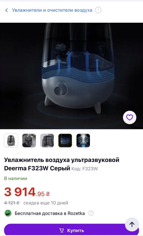 Увлажнитель воздуха ультразвуковой Deerma F323W Серый Код: F323W Идеальное состояние, все в рабочем состоянии, пользовались от силы 4 раза!