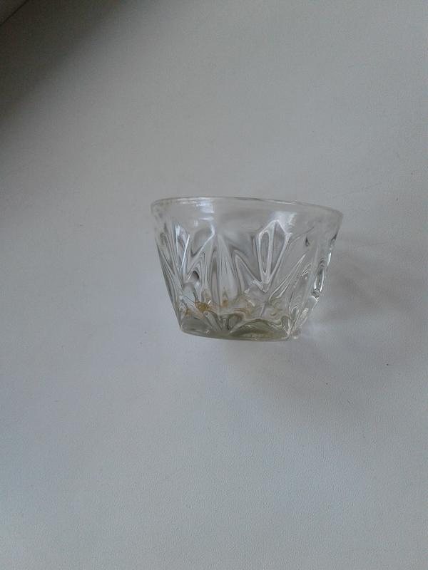 Стеклянная винтажная солонка времен СССР .На дне клеймо и цена 10 коп .Вес 79 г ,Диаметр 6 см ,высота 4 см .