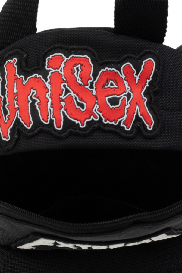 Black backpack from Balenciaga. Fastened with a two-way zip, this design features multicolored patches, logo detail, front zip pocket, half-round handle, detachable and adjustable shoulder strap as well as one internal compartment with two slip pockets.