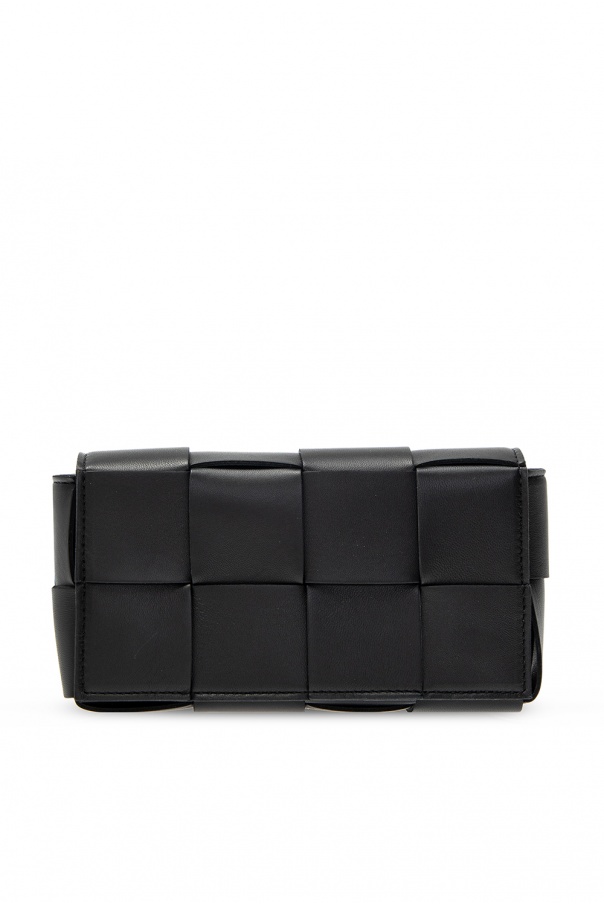 Black ‘The Belt Cassette’ belt bag from Bottega Veneta. Crafted from lamb leather, this design is distinguished with the label's iconic 'Intrecciato' weave and detailed with magnetic closures, an adjustable shoulder strap and interior with one compartment and one slip pocket.