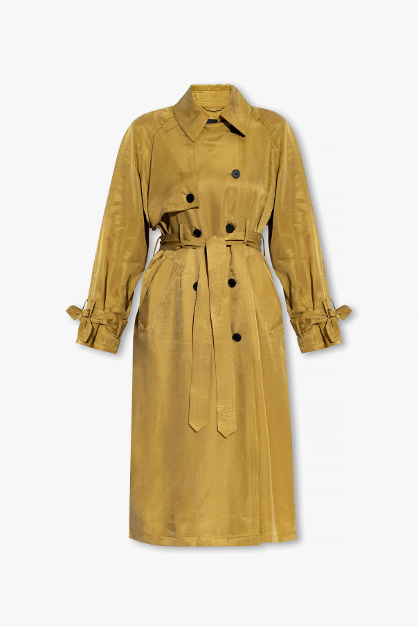 Khaki ‘Kikki’ double-breasted trench coat from AllSaints. Fastened with buttons, this long sleeve design features button fastenings, waist belt and two front pockets.