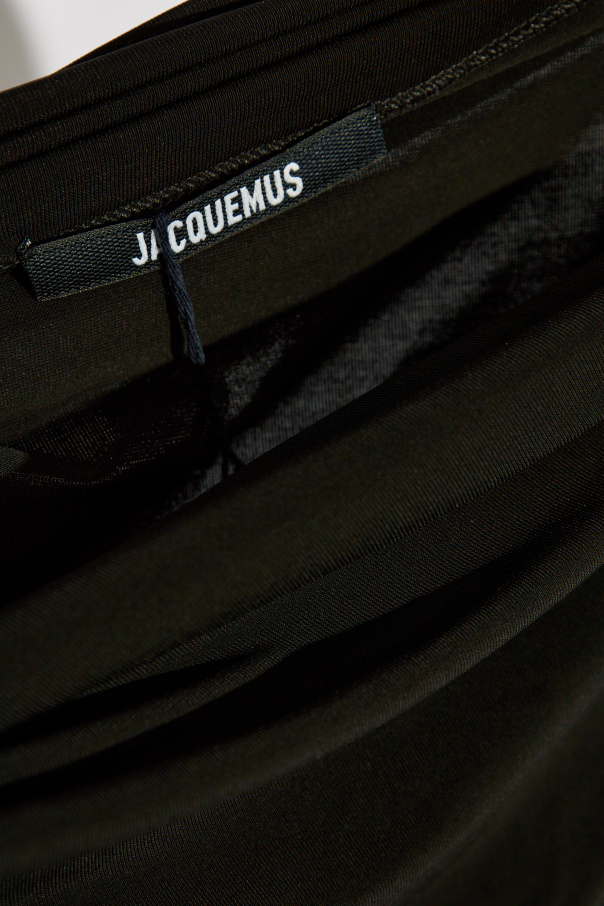 Introducing the "Drapeado" dress by Jacquemus, a masterpiece of modern elegance and sophisticated style. Crafted from a luxurious blend of viscose, polyester, and elastane, this dress offers both supreme comfort and a flattering fit. Its unique, asymmetrical neckline and single exposed shoulder create an aura of allure, while the meticulous draping along one side accentuates the silhouette, making it a statement piece for any formal occasion. The dress's ankle-length design is complemented by a subtle gathering that adds to its draped effect, ensuring a graceful flow with every step. The smooth and stretchy fabric molds to the body, promising an exquisite fit. A discreet designer logo on the inside signifies the exclusivity and prestige of the Jacquemus brand, making this dress a must-have in the wardrobe of those who appreciate high fashion. The back of the dress continues the theme of elegant asymmetry, with gentle ruching at the shoulder and along the spine, enhancing the garment's feminine charm. Whether viewed from the front or the back, the "Drapeado" dress in classic black is a testament to impeccable design and craftsmanship. Why Buy This Product? Exceptional craftsmanship from renowned designer Jacquemus. Unique asymmetrical design and draping effect for an elegant silhouette. Made from high-quality materials, ensuring both comfort and durability. Versatile and timeless, perfect for various formal occasions. Exclusivity marked by the discreet Jacquemus logo.