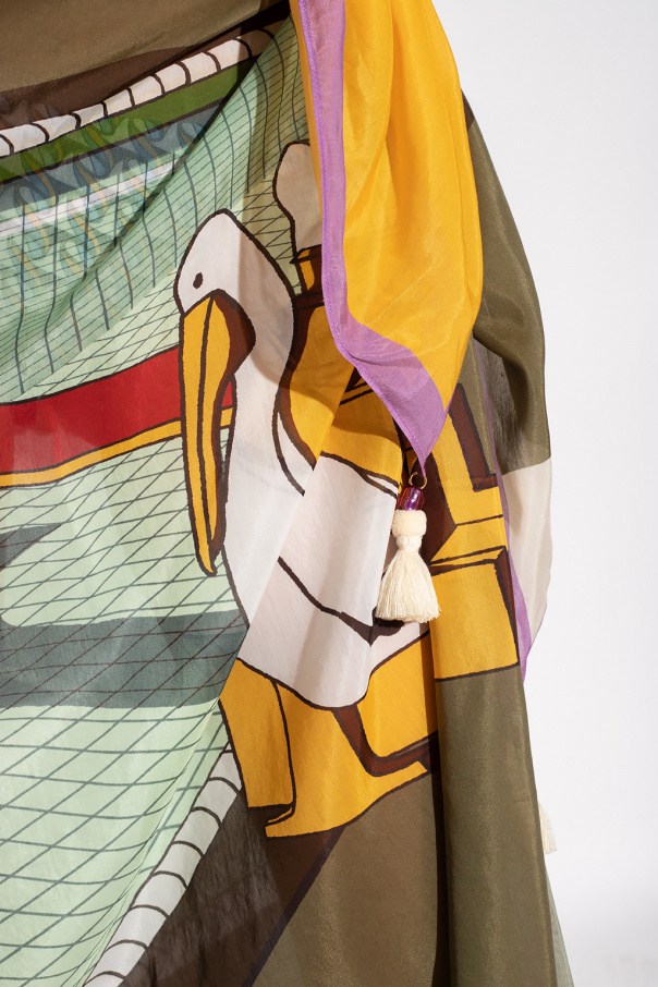 Multicoloured beach pareo from Tory Burch. Crafted from a cotton and silk blend, this style features a graphic print and distinctive fringes.