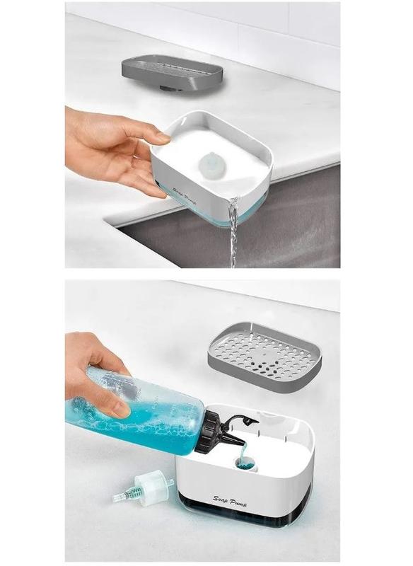 Диспансер для моющего средства с дозатором и подставкой для губки. Очень