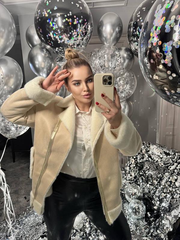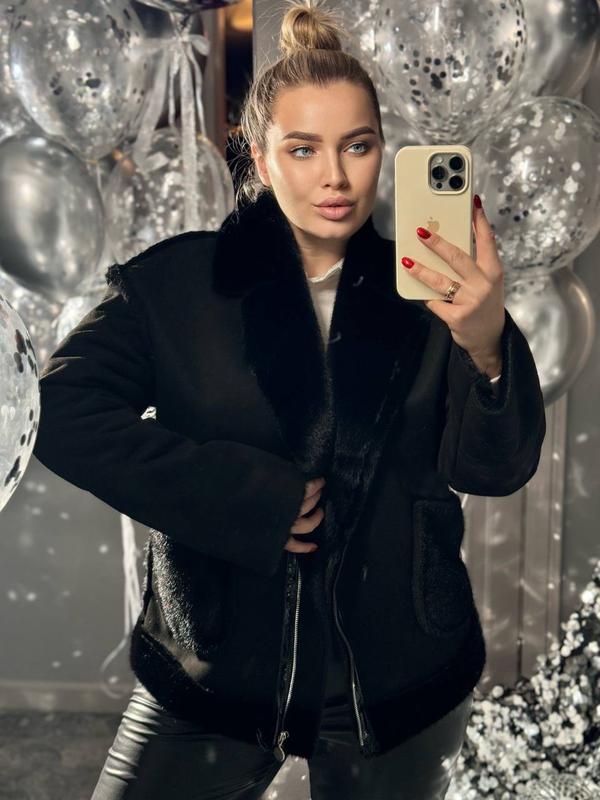 Модель застегивается на молнию. Изготовлена из дубленки: замша Хорошего качества, искусственный мех - Норка. Тренд этого сезона, греет и украшает. Рукава с подворотами, которыми. регулируется длина от 70-55 см (от плеча). Длина изделия 75 см