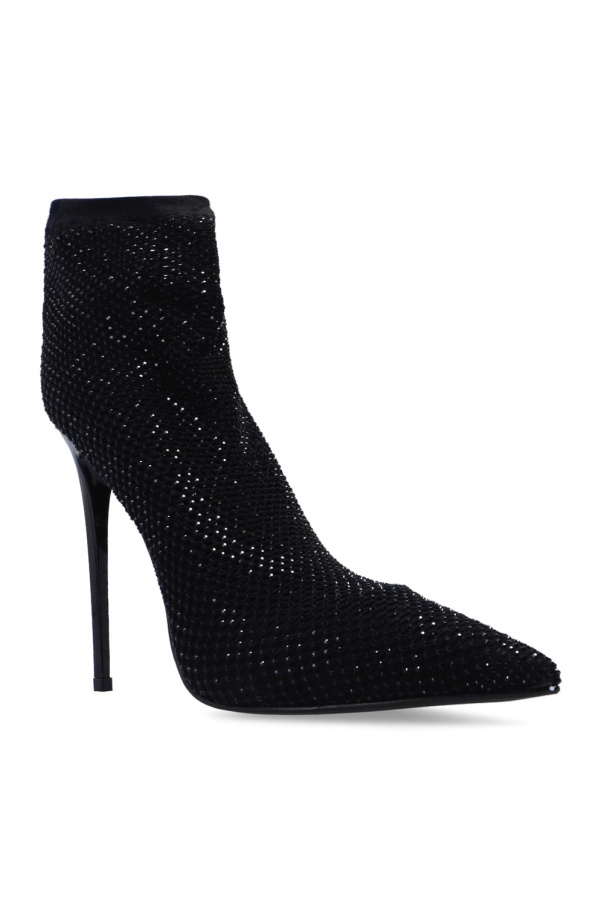 Black stiletto pumps from Le Silla. Crafted in mesh and leather and encrusted with minuscule tonal crystals, this pair sits on a black rubber-injected leather sole.