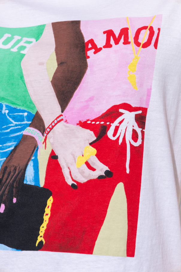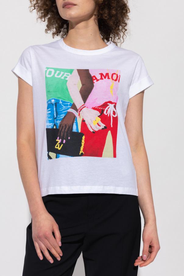 White crewneck T-shirt from Zadig & Voltaire. Made from cotton, this style features short sleeves and a colourful graphic print.