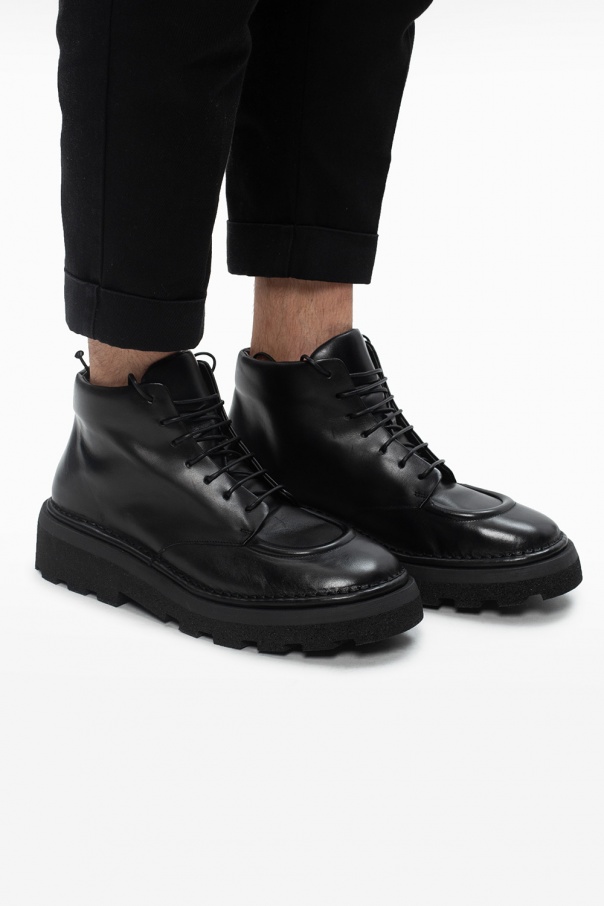 Black shoes from Marsll. Crafted from leather, this lace-up pair sits on a black leather sole and employs distinctive stitched seams on the front.