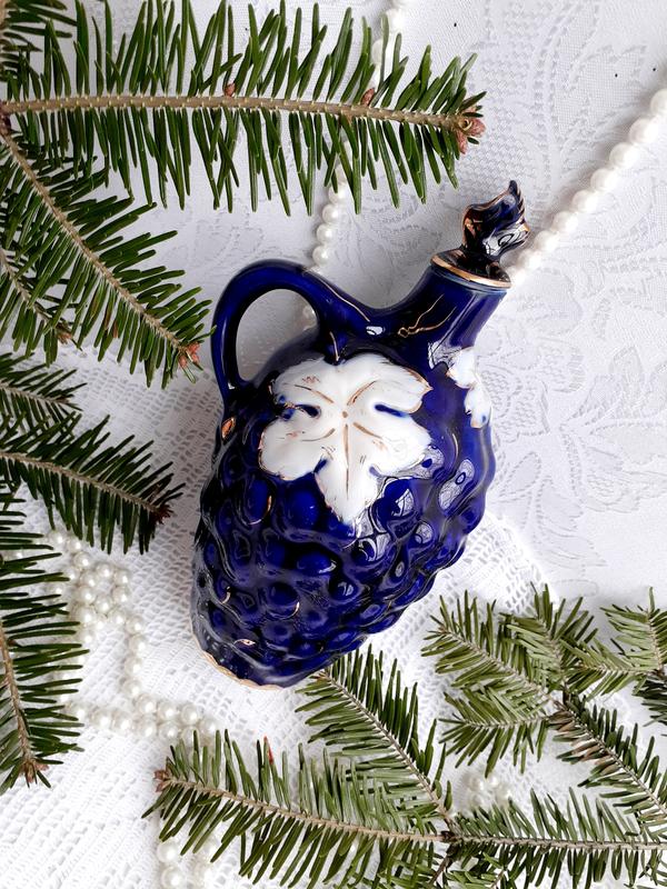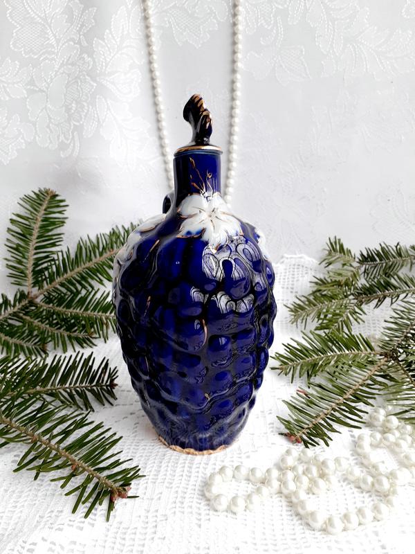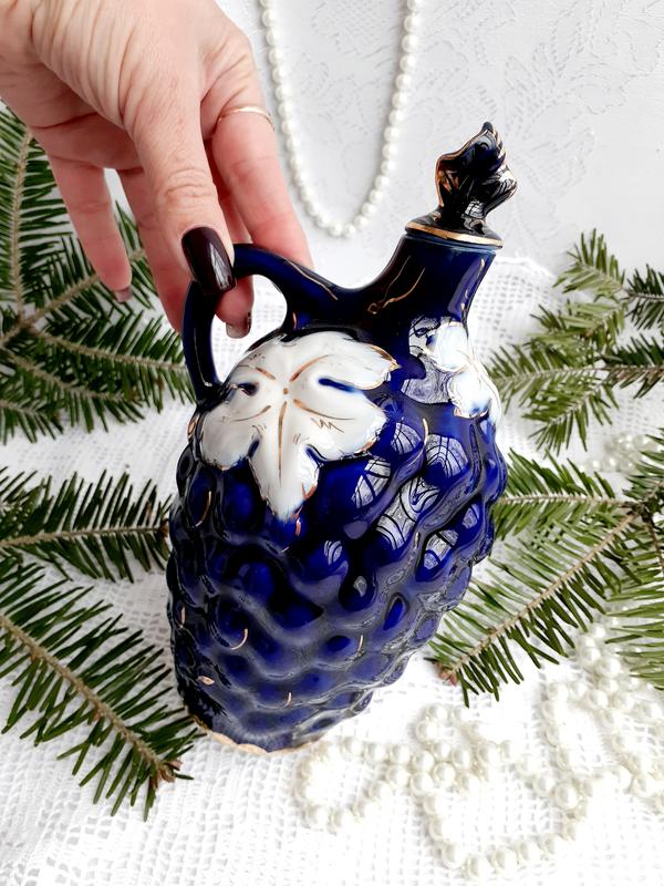 Изысканная вещица с легкой ноткой ностальгии, - эффектный расписной штоф "Виноград" изготовлен на Коростенском фарфоровом заводе, судя по клеймению на донной части в 1955-1962 годах!
