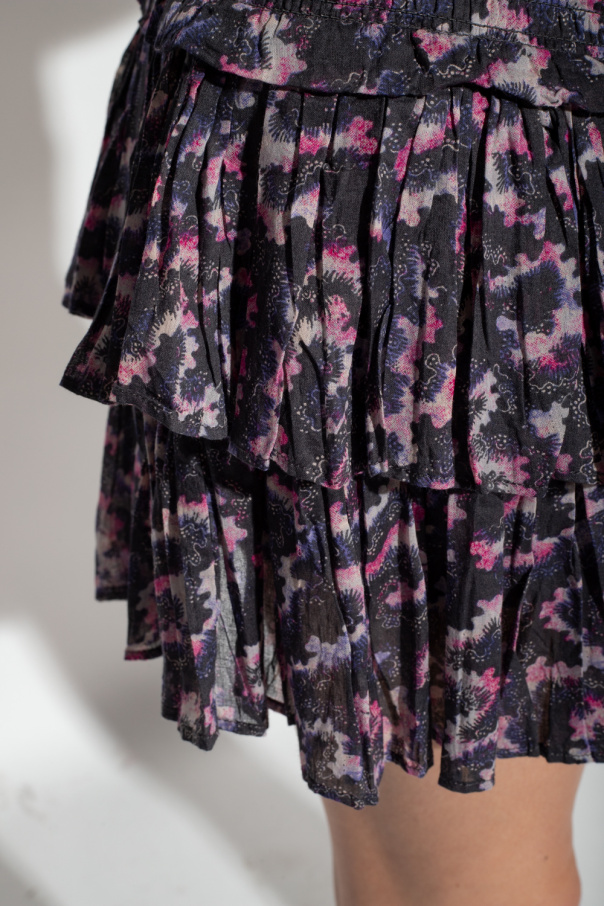 Black ‘Naomi’ mini skirt from Isabel Marant Etoile. Made from organic cotton, this style showcases a colourful graphic pattern. It is complete with a wide, ruched elastic waistband and a ruffled hem.