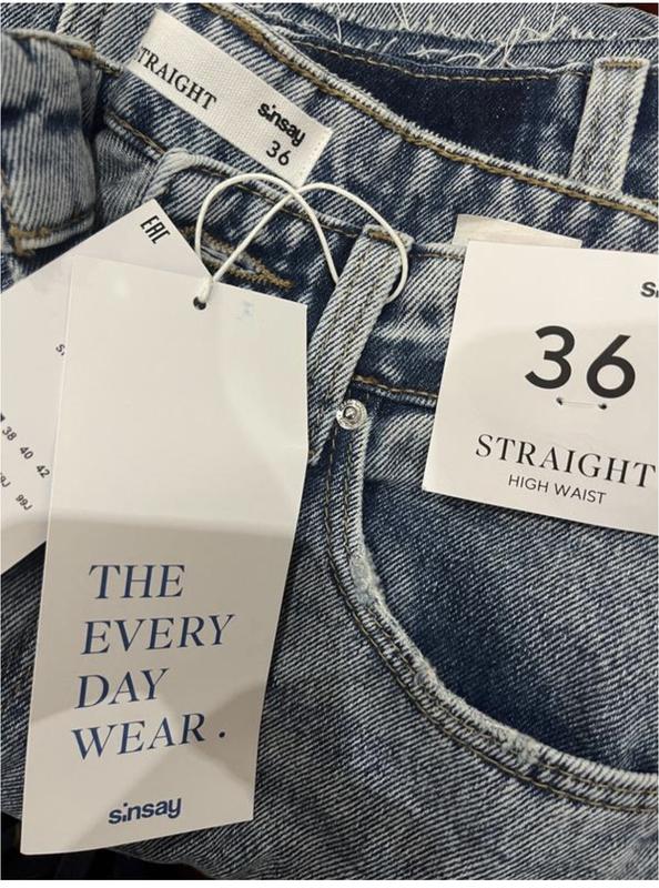 Прямые джинсы от Sinsay. Заказавшая себе, не выбрал размер. Продав значно дешевше . Размер 36
