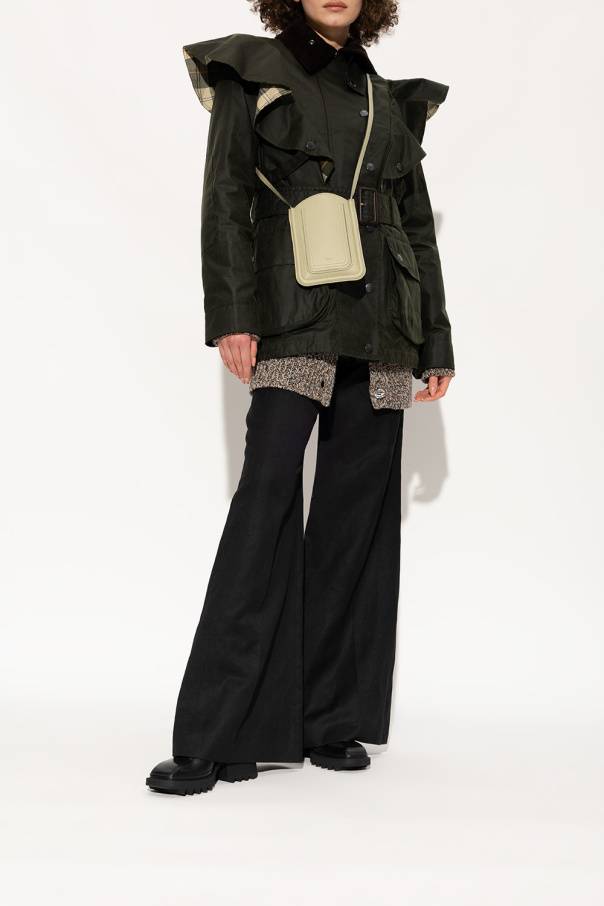 Black ‘Betty’ heeled rain boots from Chloé. Crafted from rubber and trimmed with cream shearling, this model sits on a black rubber sole and features a side zipper, a leather strap with a gold-tone logo appliqué and stitching details, and a square, slightly rounded toe.