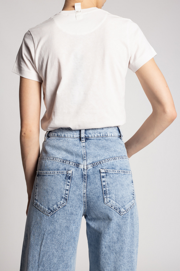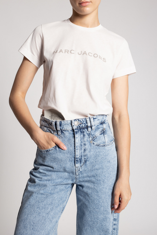 White crewneck T-shirt from Marc Jacobs. Crafted from cotton, this style showcases a light grey graphic print with the brand's logo.
