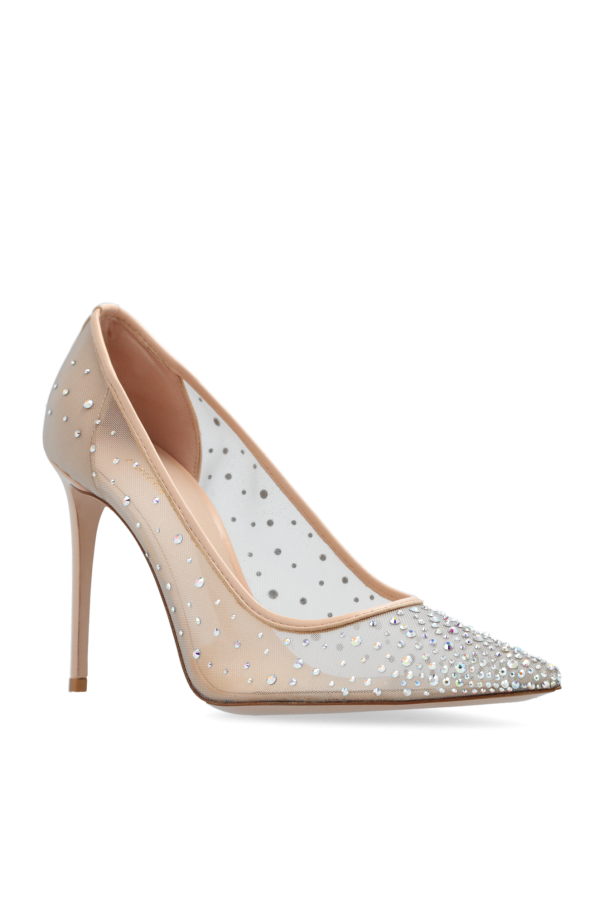Beige ‘Nicole’ pumps from Le Silla. Made from transparent mesh with a pointed-toe silhouette, this model sits on a light beige sole in leather and rubber sole and showcases leather trims and sparkling crystals.