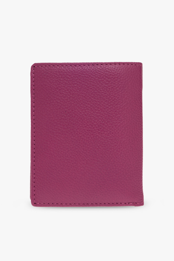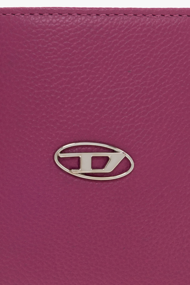 Purple wallet from Diesel. Made of leather, this item fastens with a snap closure and is decorated with a metal logo detail. It has one bill compartment, one snap-fastened coin pocket and four card slots inside.