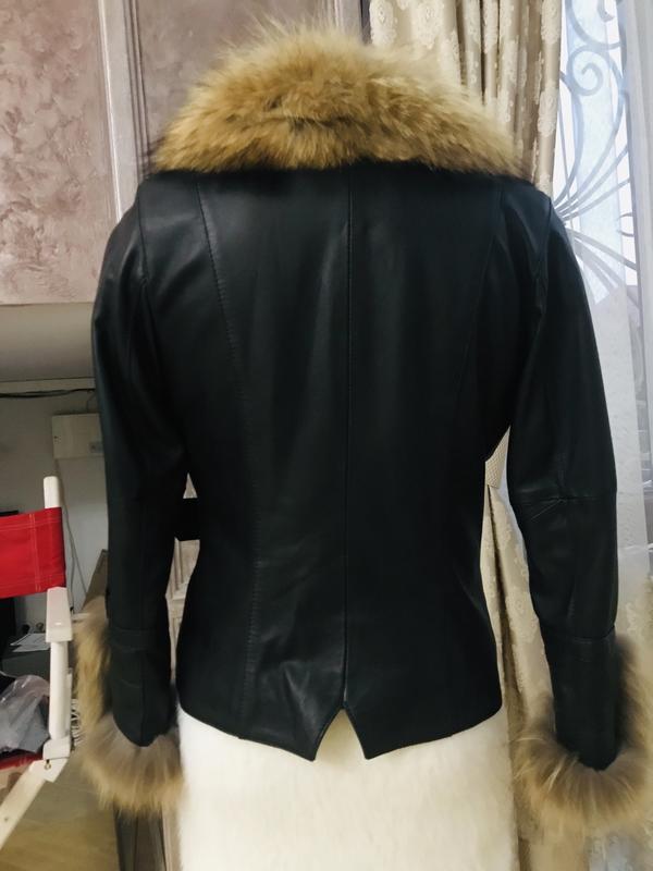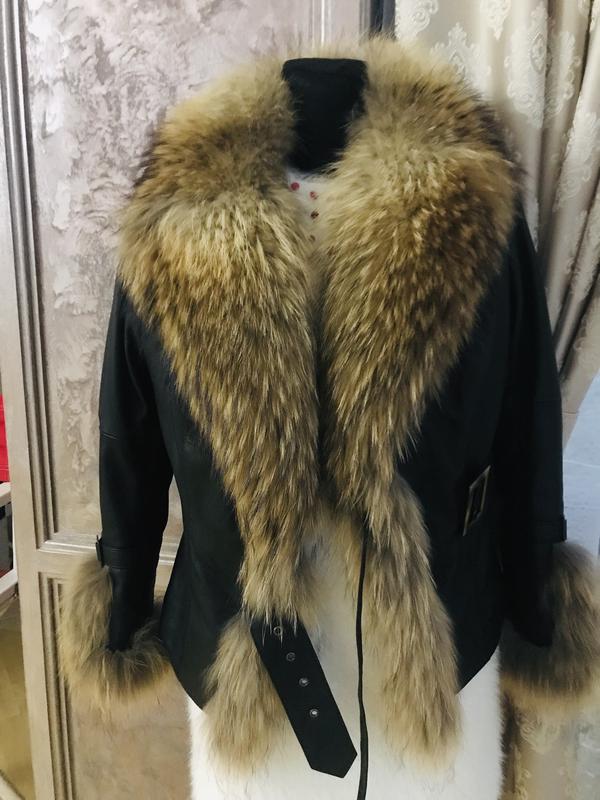 Классная кожаная куртка с натуральным мехом енота, размер s . Объём груди 100 см, длина по спине 53, длина рукава 53, объём бёдер 95, ширина плеча 36. Очень приятная и мягкая кожа