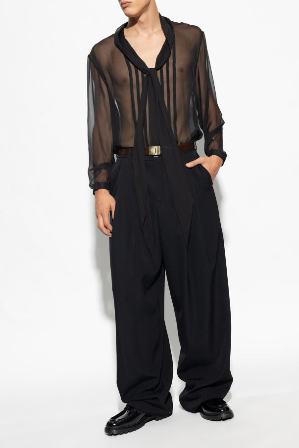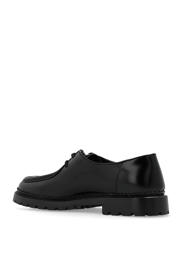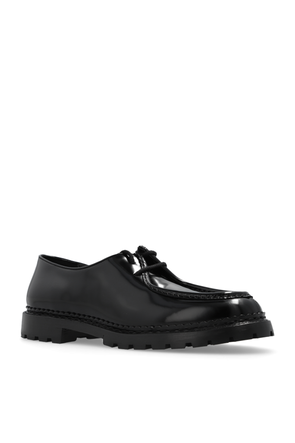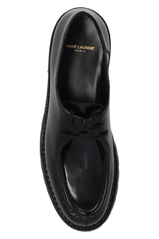 Black ‘Malo’ shoes from Saint Laurent. Made from patent calf leather, this lace-up model sits on a black rubber sole.