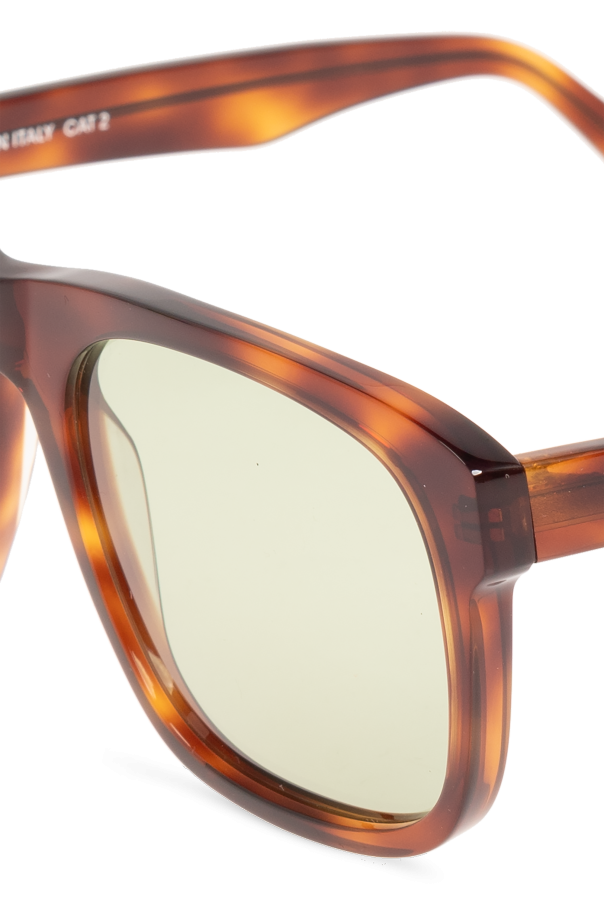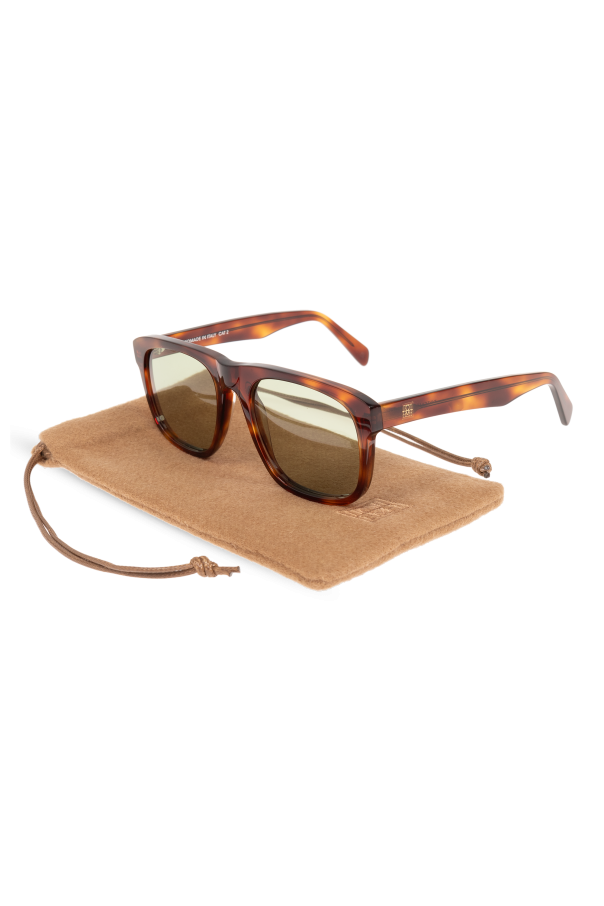 Introducing the quintessence of sophistication and refined taste, the TOTEME Navigator Sunglasses. Crafted with meticulous attention to detail, these sunglasses feature classic rectangular frames, boasting a rich, translucent brown hue with a subtle, marbled or tortoiseshell pattern. This exquisite design, achieved through the use of high-grade acetate, exudes an air of refined elegance. The lenses present a harmonious gradient, seamlessly transitioning from a darker shade at the top to a lighter tone at the bottom, a style celebrated for its aesthetic appeal and functionality. Enhanced with slight reflective properties, these lenses may feature mirror or photochromic coatings, offering not only superior style but also excellent protection against the sun's rays. The green-tinted lenses are specifically designed to shield your eyes from harmful UV radiation, ensuring both safety and comfort. Adorning the temple of these luxurious sunglasses is a delicate inscription, likely denoting the TOTEME brand or model, a hallmark of exclusivity and high-fashion lineage. Accompanied by a case crafted from suede-like material, these sunglasses promise not only unparalleled style but also meticulous care and storage. Presented through a variety of perspectives, including on a model, these photographs allow for a comprehensive appreciation of the shape, finish, and unique details of the product, highlighting the impeccable fit and aesthetic harmony when worn. Why Purchase These Sunglasses? Elegant, high-quality acetate frames with a distinctive, refined pattern. Gradient, green-tinted mineral glass lenses with UV protection and reflective coatings. Exclusive branding on the temple, signifying luxury and high-fashion status. Includes a soft, protective case for elegant storage and preservation. Superb craftsmanship from TOTEME, a renowned name in fashion design.
