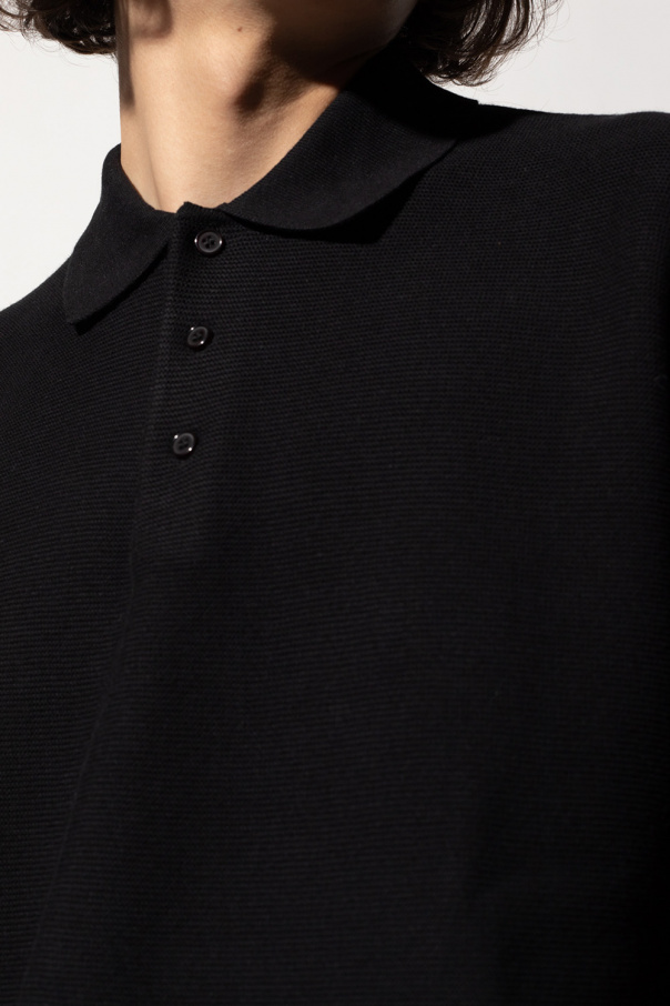 Black polo shirt from Samsoe Samsoe. Crafted from cotton, this short-sleeve design has a collar with button fastenings.