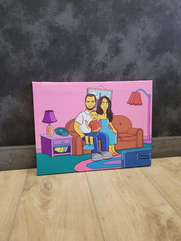 Картина на холсте по Вашим фото в стиле семейки Симпсонов.