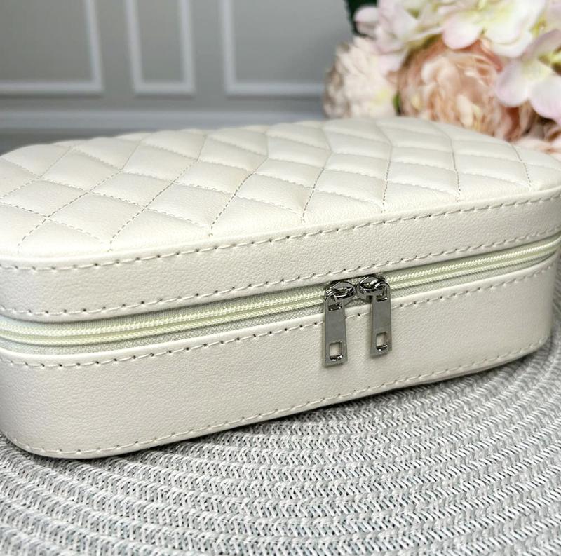 Данную шкатулку очень удобно брать с собой в дорогу, также можно использовать дома. Удобная и красивая вещь.В ней можно хранить ваши украшения: кольца, серьги, часы, браслеты, и прочие украшения, чтобы они всегда были под рукой. Состоит из 1-ого отдела. Шкатулка на молнии, фурнитура серебристого цвета. Имеется зеркало. Выполнена из кожезаменителя.
