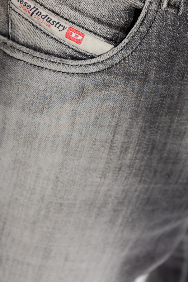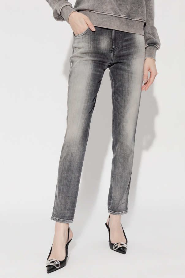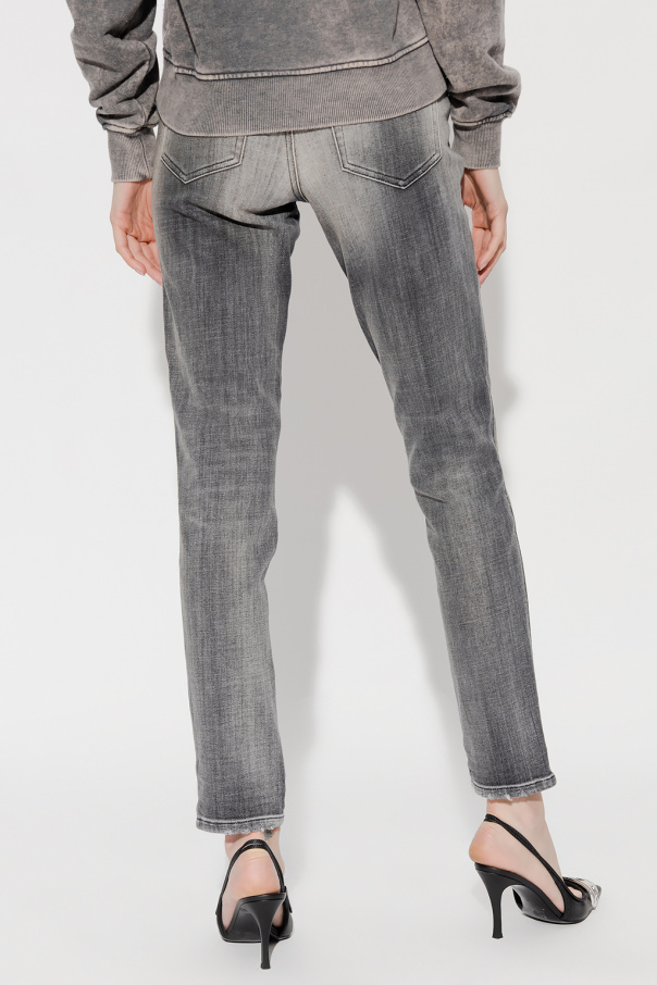 Grey ‘2015 BABHILA L.32’ jeans from Diesel. Crafted from cotton, this pair features a zip and button closure, worn effect, logo patch at the back and five slip pockets.