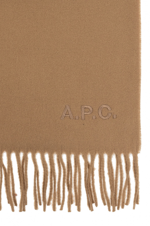 Beige scarf from A.P.C. Made of wool, this design is enriched by a logo embroidery and fringes.