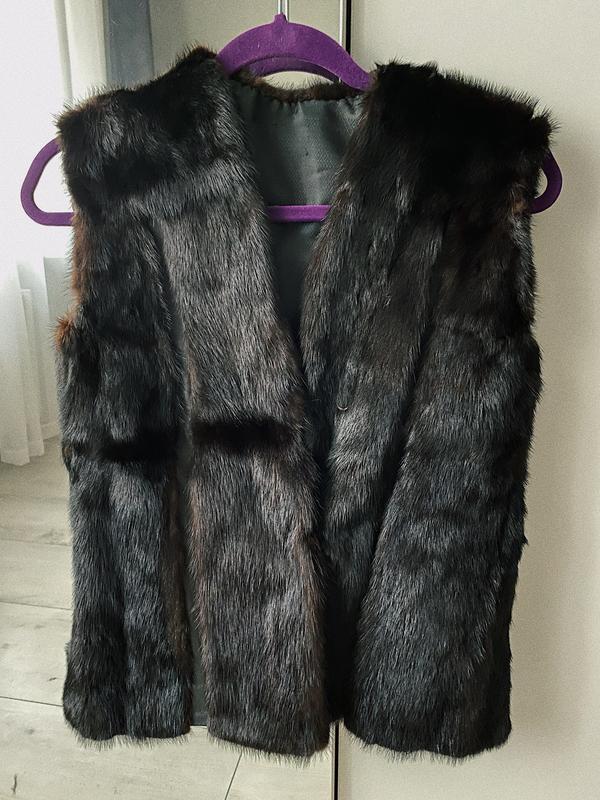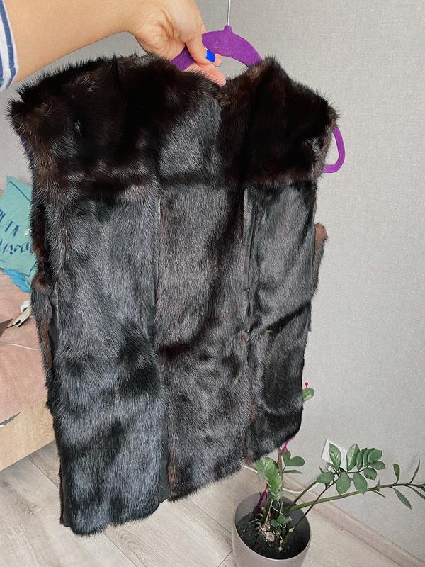 Жилетка из норки. Мех качественный, блестит. По всей площади вшиты кожаные вставки, выглядит очень стильно.
