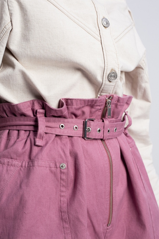 Pink shorts with a belt from Isabel Marant Étoile. Crafted from a cotton and linen blend, this design features a zip fastening, two front pockets, two buttoned back pockets.