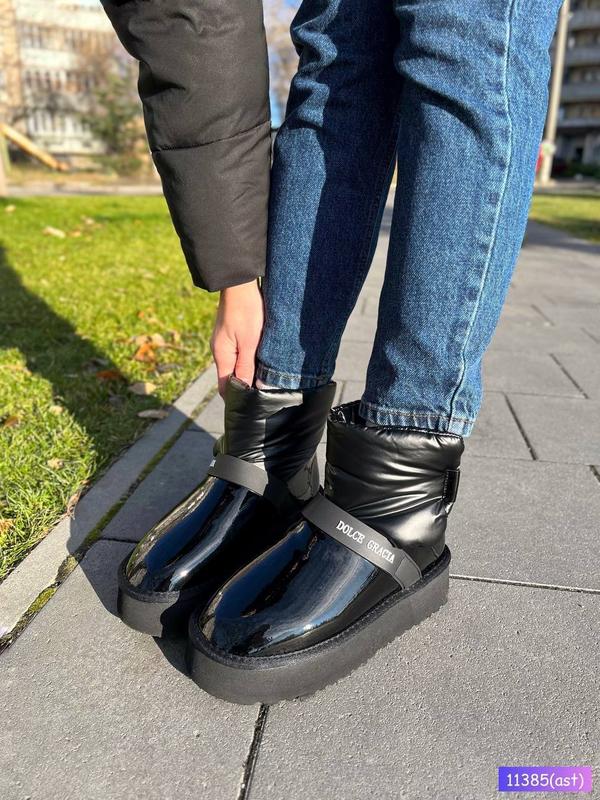 Угги черные натуральные лаковые комби на липучке.