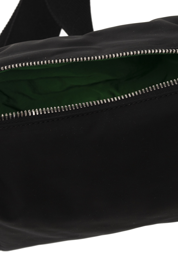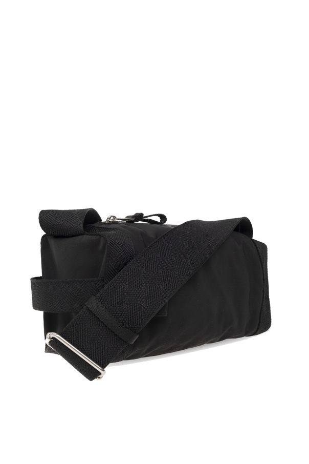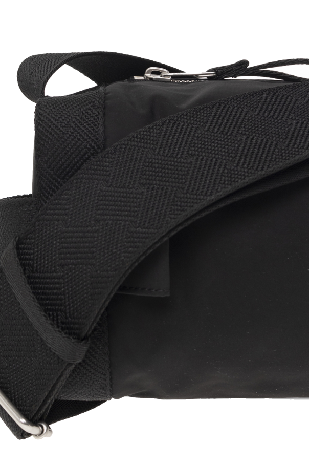Black ‘Voyager Sling’ shoulder bag from Bottega Veneta. Crafted from recycled material, this design features a zip fastening, a half-round handle, a shoulder strap, silver-tone metal hardware and two compartments inside.