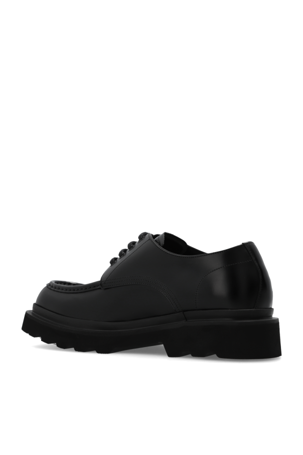 Black derby shoes from Dolce & Gabbana. Made of smooth leather, this lace-up pair features stitching details and a black rubber sole.