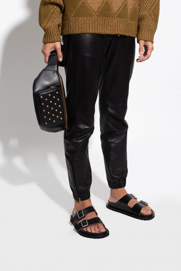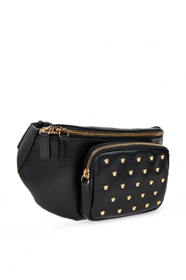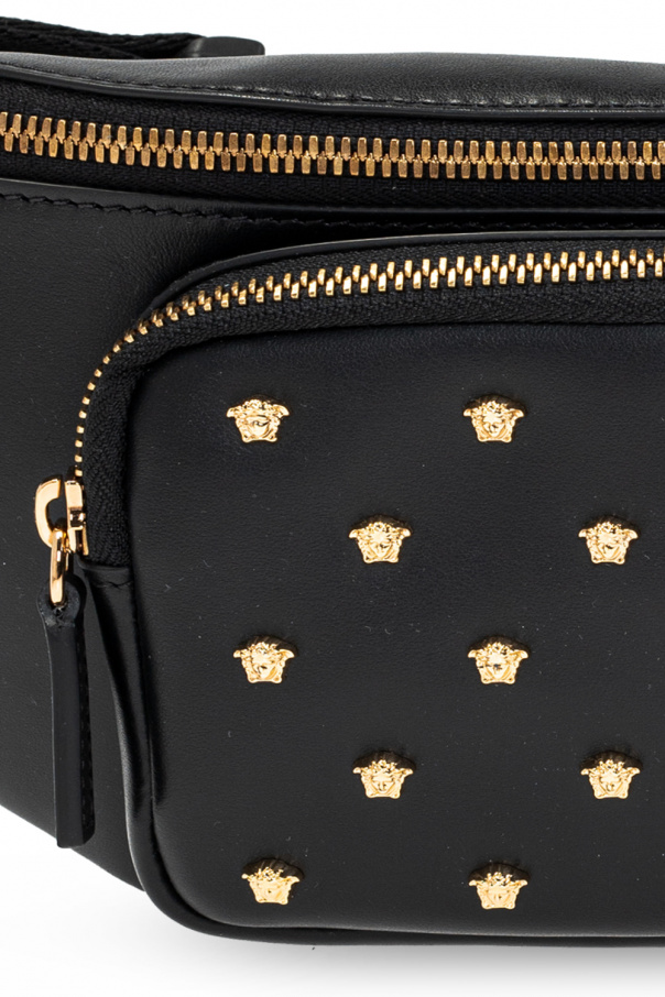 Black belt bag from Versace. Crafted from calf leather, this model features a two-way zip, front zip pocket, the label’s signature Medusa head, gold-tone metal hardware, adjustable strap and one internal compartment with one slip pocket.