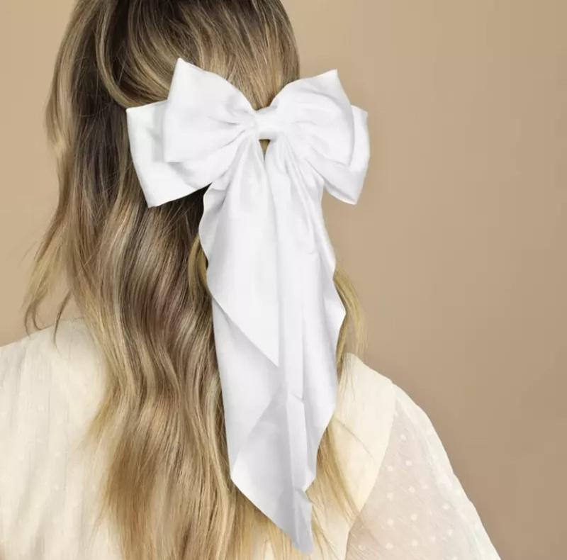 Красивый атласный женский бант заколка- автомат для волос белого цвета ,