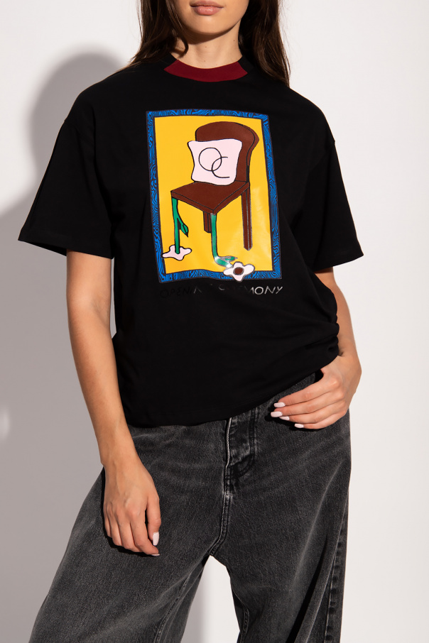 Black crewneck T-shirt from Opening Ceremony. Made of cotton, this garment is decorated with a multicolored textured logo print.