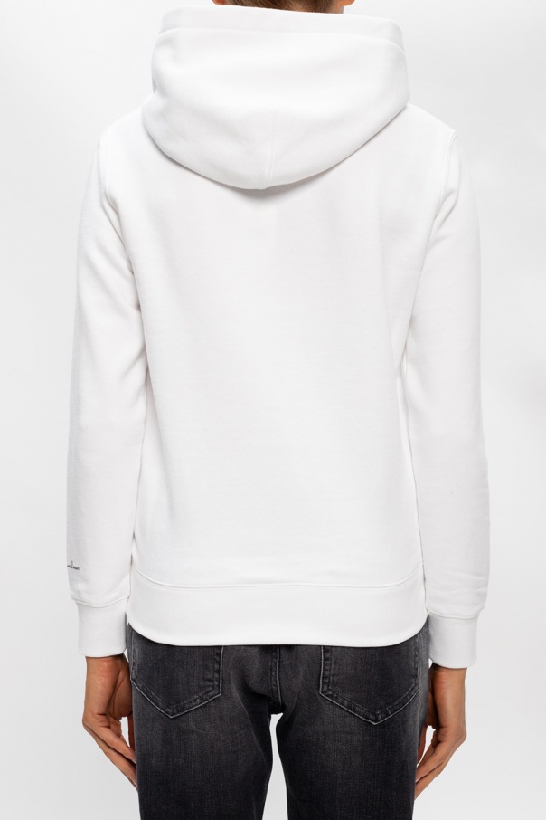 White hoodie from Coach x Jean-Michel Basquiat. Crafted from cotton jersey, this garment pays homage to renowned New York City artist Jean-Michel Basquiat's revolutionary works of art through embroidered motifs on the front. It also features a kangaroo pocket and ribbed finishes.