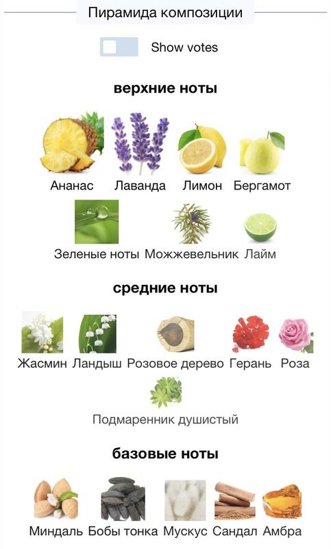 ✅ Верхние ноты: Ананас, Лаванда, Лимон, Бергамот, Зеленые ноты, Можжевельник и Лайм;