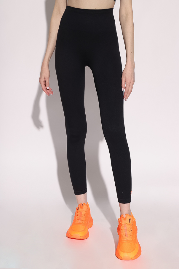 Black training leggings with an elastic waistband and orange logo embroidery from Reebok x Victoria Beckham.