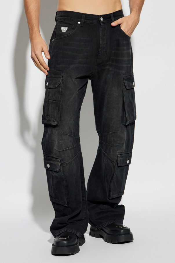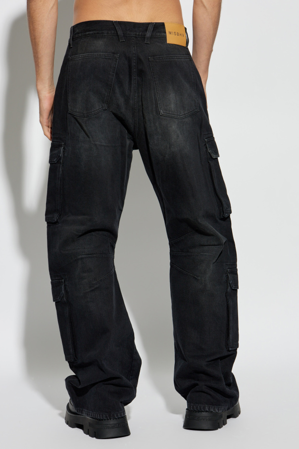 Indulge in the epitome of urban sophistication with the Black Cargo Jeans from the distinguished collection of MISBHV. These jeans are a testament to the brand's avant-garde philosophy, meticulously crafted from premium 100% cotton denim. With a regular fit and wide-leg silhouette, these jeans exude an effortlessly chic aesthetic. The black hue, enhanced by a subtle distressed finish, imparts a rugged yet refined vibe. Multiple cargo pockets, both front and back, provide ample storage and are secured with snaps for added functionality and style. The front pocket is adorned with a metal plaque bearing the designer’s logo, while a leather patch with the brand's name graces the rear, epitomizing authentic craftsmanship. Classic button and zipper closure, along with reinforced stitching at the hems, ensure durability and comfort. Why Choose This Product? Exquisite design with a blend of modern and vintage elements Functional cargo pockets with snap closures Premium denim material offering comfort and durability Distinctive branding details for an exclusive touch Regular fit for a relaxed and stylish look