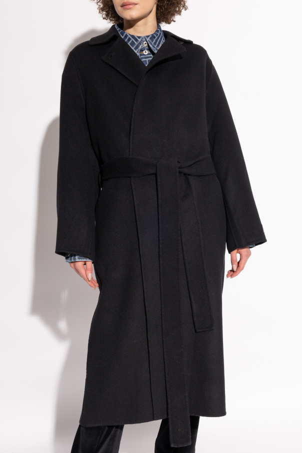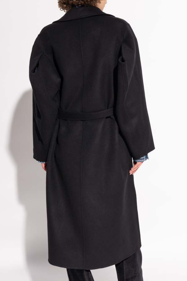 Introducing the epitome of elegance and sophistication – the Kenzo Double-Breasted Coat. This exquisite black coat, crafted by the renowned fashion house Kenzo, is a testament to timeless style and unparalleled quality. Designed with a long, below-the-knee silhouette, this coat exudes a classic charm. The straight cut, subtly tailored with a waist belt, ensures a flattering fit while maintaining an air of refined simplicity. The high-quality fabric, a luxurious blend of wool and alpaca, offers exceptional warmth and comfort, making it an indispensable addition to your wardrobe. Every detail of this coat speaks of its premium craftsmanship. The classic collar adds a formal touch, while the hidden buttons of the double-breasted front enhance its minimalist appeal. A discreet patch with the "KENZO PARIS" logo on the sleeve signifies its designer origin, further elevating its status. In a versatile black shade, this coat is perfect for any occasion, from formal events to everyday wear during cooler months. The long sleeves provide additional protection against the cold, while the smooth, pattern-free fabric contributes to its modern, minimalist look. Why Buy This Product? Elegant Design: Long, tailored fit with a waist belt for a flattering silhouette. Premium Material: Crafted from a luxurious blend of wool and alpaca for warmth and comfort. Timeless Appeal: Classic black color and minimalist design suitable for any occasion. Designer Quality: Features the iconic "KENZO PARIS" patch, signifying its exclusive origin. Functional Details: Double-breasted front with hidden buttons and two practical pockets.