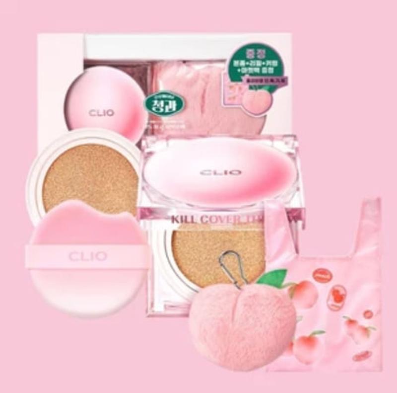 Стійкий кушон у лімітованому дизайні Clio Kill Cover The New Founwear Cushion Set Peach Edition - тональна основа для обличчя у формі кушона, містить в комплекті додаткове поповнення засобу. Продукт залишає матовий, натуральний фініш. Вирівнює тон і довго залишається на шкірі. Зменшує помітність недоліків і розгладжує нерівності. Продукт збагачений змішаними фільтрами для захисту від негативного впливу сонячного випромінювання. Він також містить аденозин з антивіковими та освітлюючими властивостями і ніацинамід з антиоксидантною дією.Активні компоненти: